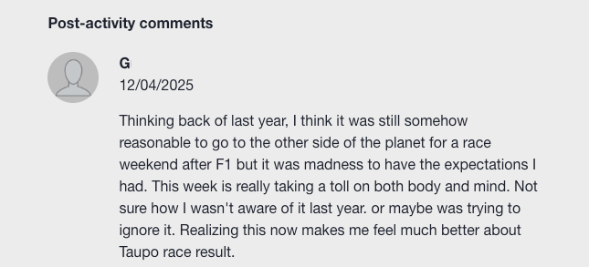 A significant other's birthday, a family commitment, a big work deadline; none of these need to rule out a race, but having visibility on them matters. A missed weekend of training in the final weeks of an Ironman build can have a real impact. Knowing about it in advance means you and your coach can plan around it rather than scramble when it arrives.